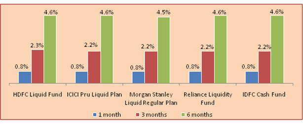 Not just in terms of 1 year returns, liquid funds have given more returns than savings bank even in the 1 month, 3 months and 6 months time frames. See the chart below.